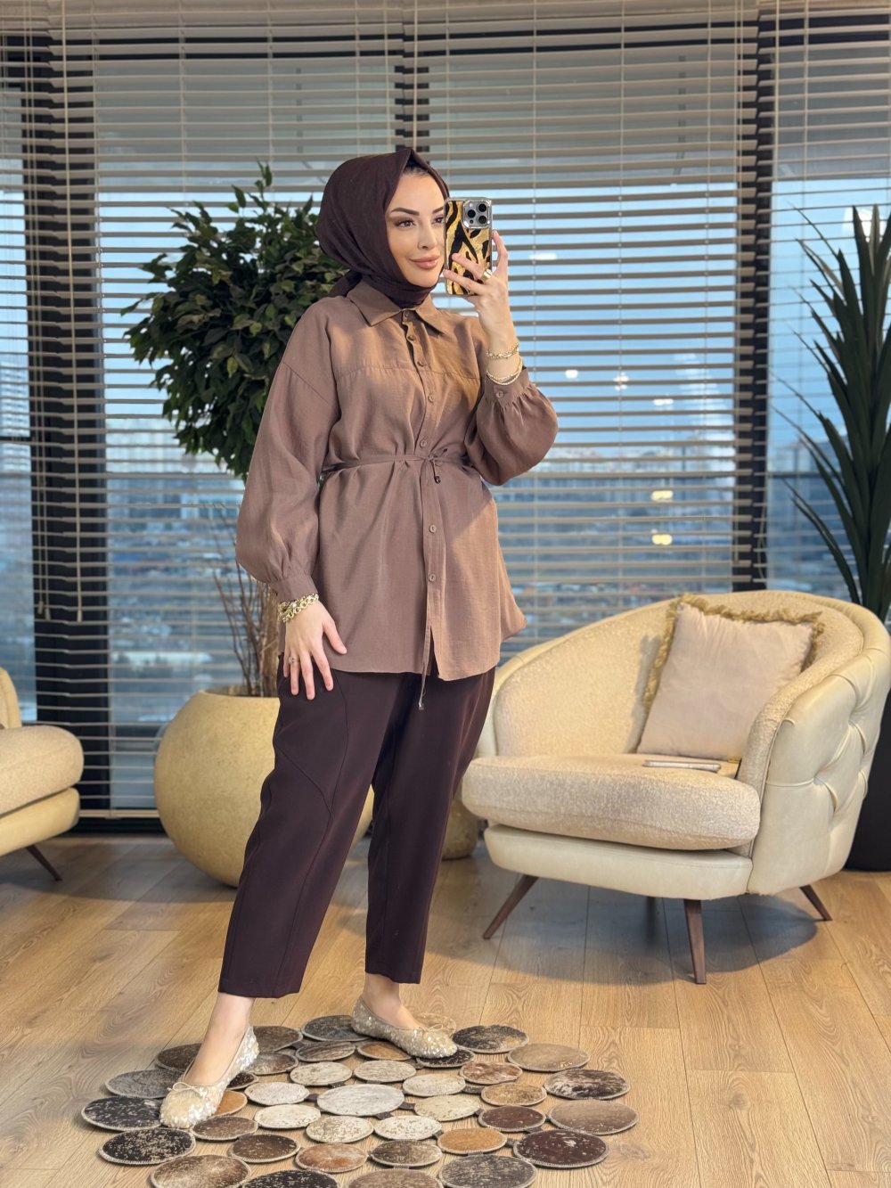 4464 Robası Dikişli Klasik Gömlek Vizon