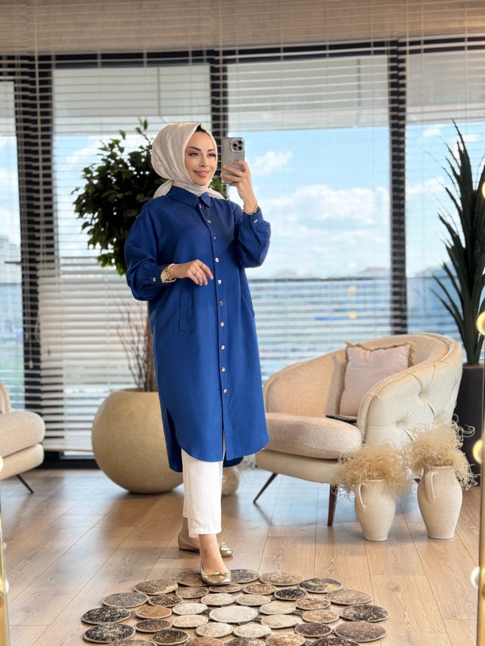 5808 Metal Düğmeli Uzun Tunik Siyah