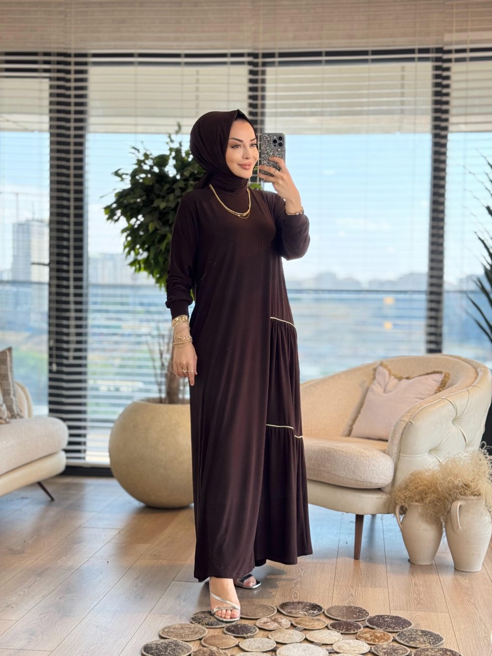 6110 Elisa Garni Detaylı Elbise Kahve