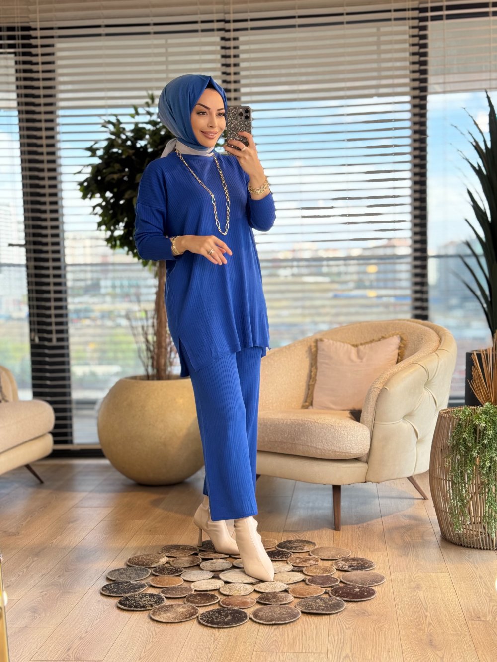 7016 Vanezia Fitilli Triko Pantolonlu Takım Saks