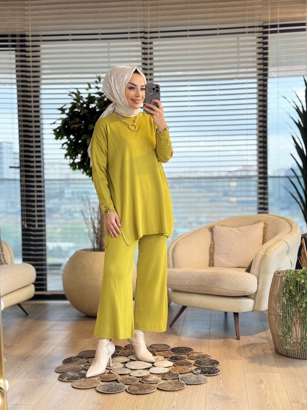 7016 Vanezia Fitilli Triko Pantolonlu Takım Yağ Yeşili