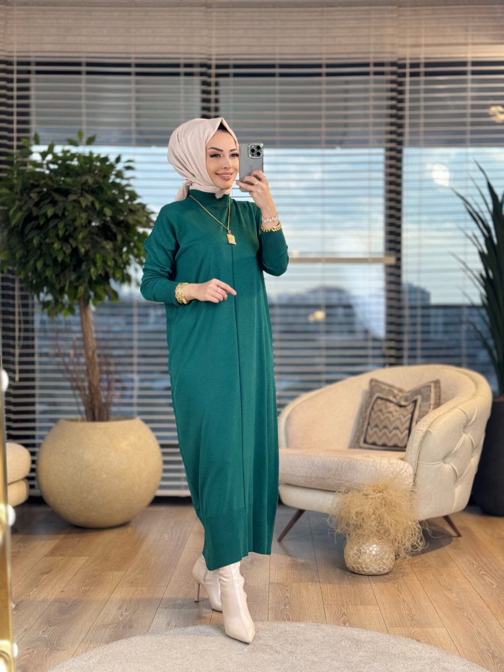 7017 Öpücük Yaka Vanezia Triko Elbise Zümrüt