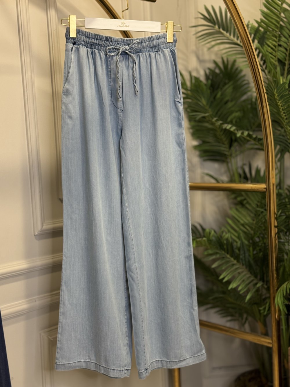 7271 Tencel Beli Bağcıklı Pantolon Açık Mavi