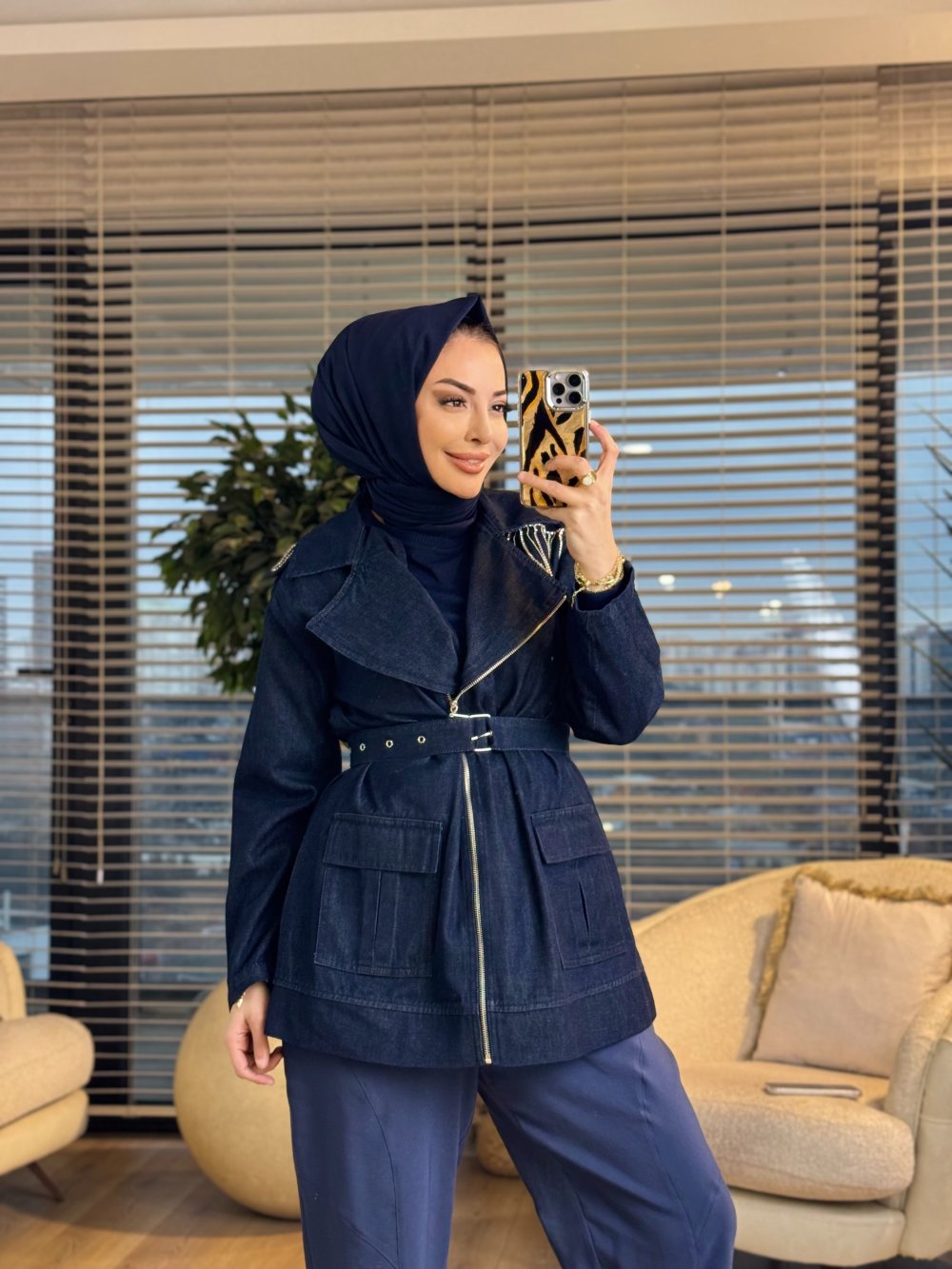 7471 Omuz Taş Şerit Detay Kot Ceket Lacivert