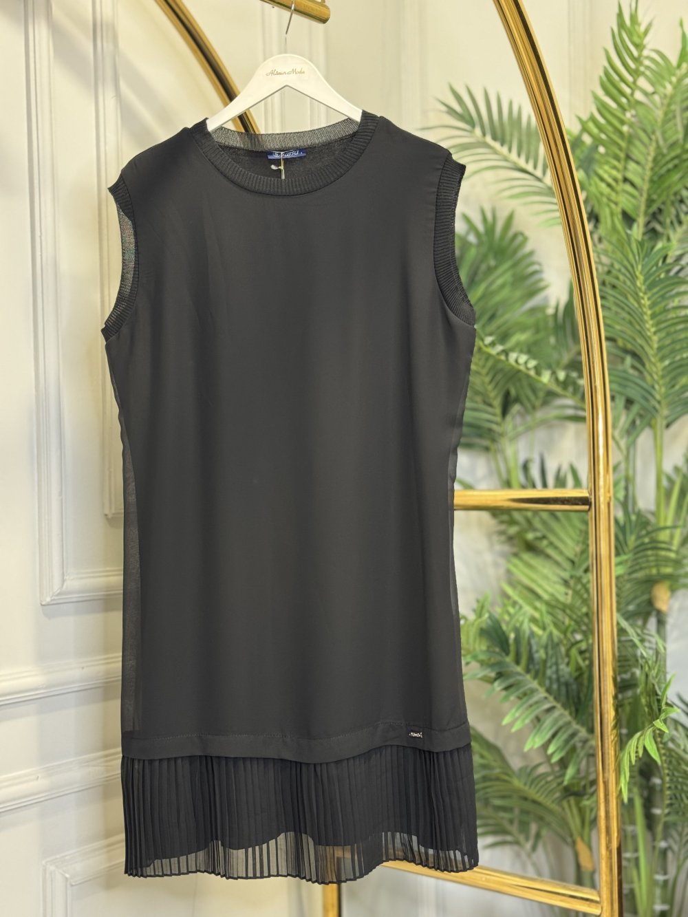 876 Önü Şifon Altı Piliseli Kolsuz İçlik Siyah