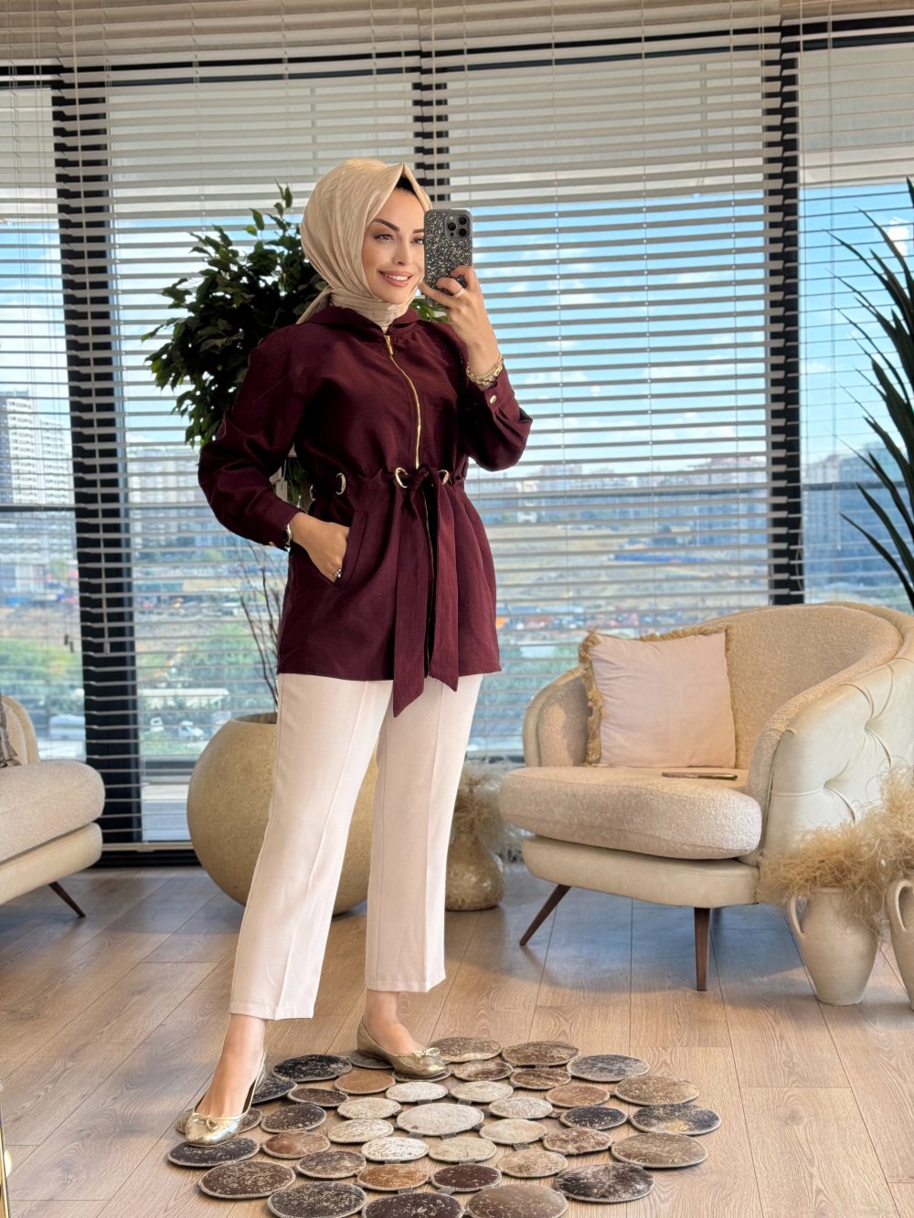 9261 Gold Halka Ve Kuşak Geçişli Kap Bordo