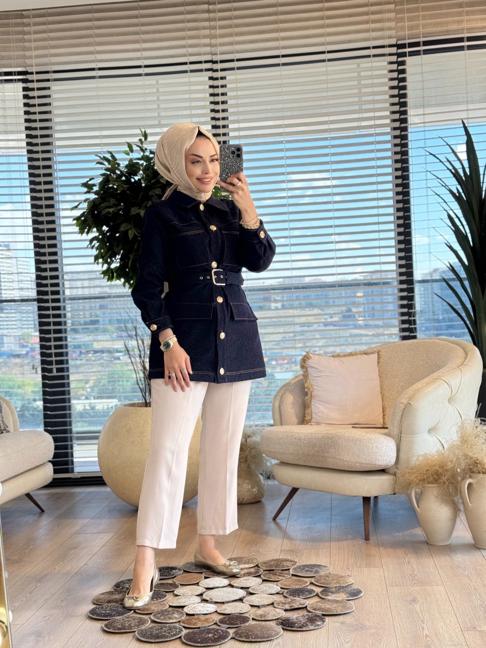 9263 Kot Önü Dört Cepli Kemerli Kap Lacivert