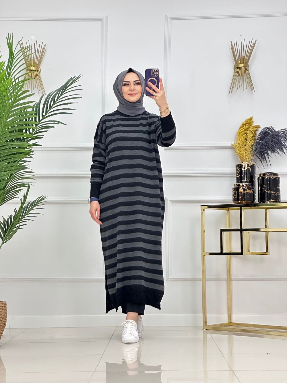 CANSEL ÇİZGİLİ TRİKO TUNİK-DUMAN