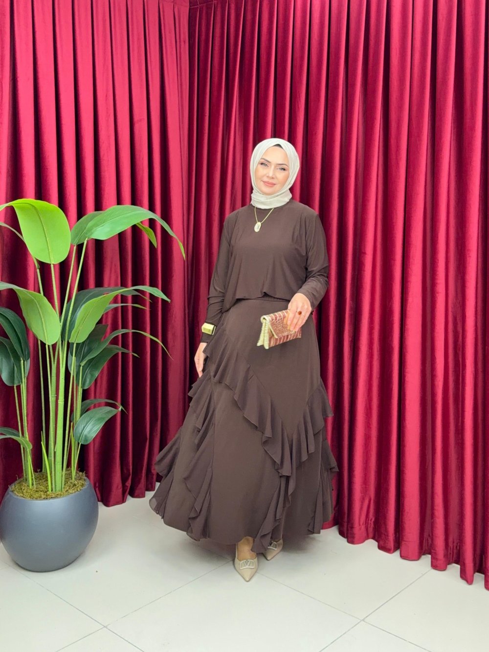 ESMA ETEKLİ TAKIM - KAHVERENGİ