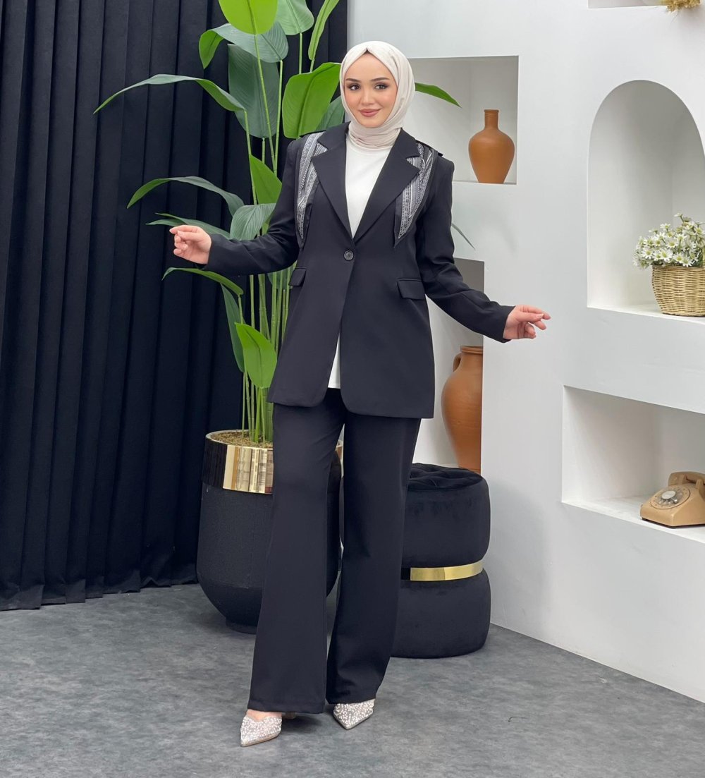 Fularlı Ceket Takım