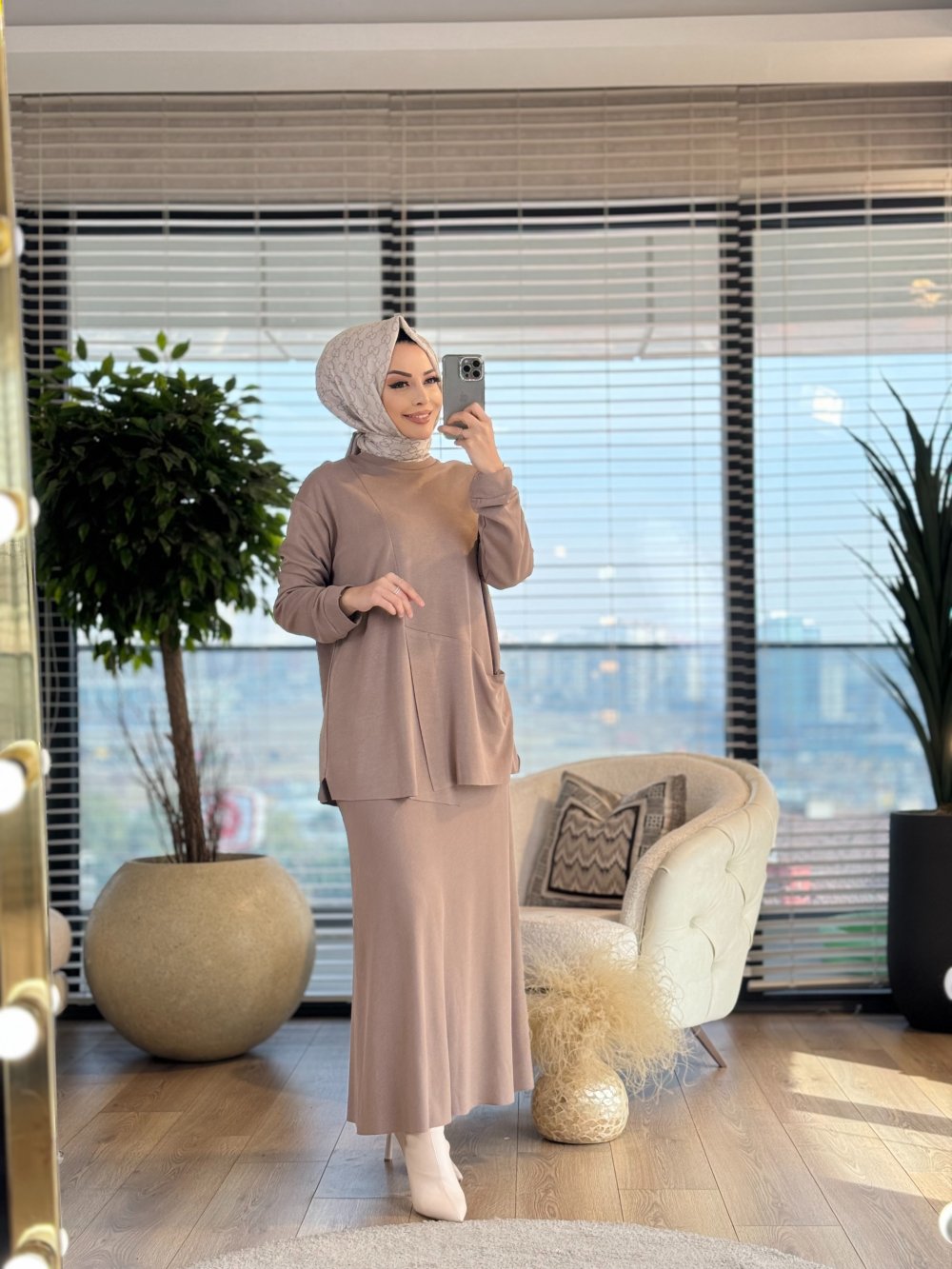 W5955 Kanguru Cepli Verev Etekli Takım Vizon